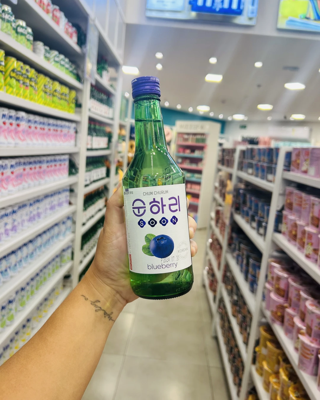O Soju Chum-Churum Lotte Blueberry de 360ml combina suavidade alcoólica com aroma frutado natural, ...