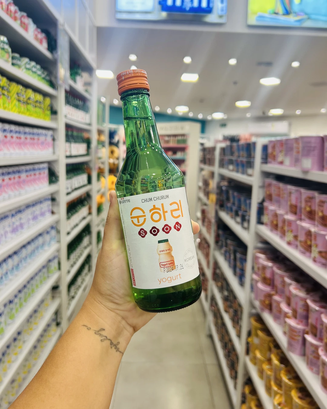 O Soju Chum-Churum Lotte Iogurte de 360ml oferece equilíbrio doce e alcoólico com sabor cremoso, p...