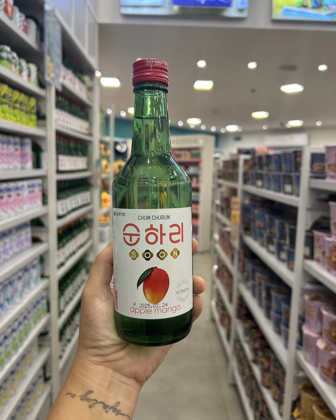 O Soju Chum-Churum Lotte Manga de 360ml oferece equilíbrio doce e alcoólico com sabor tropical, pe...