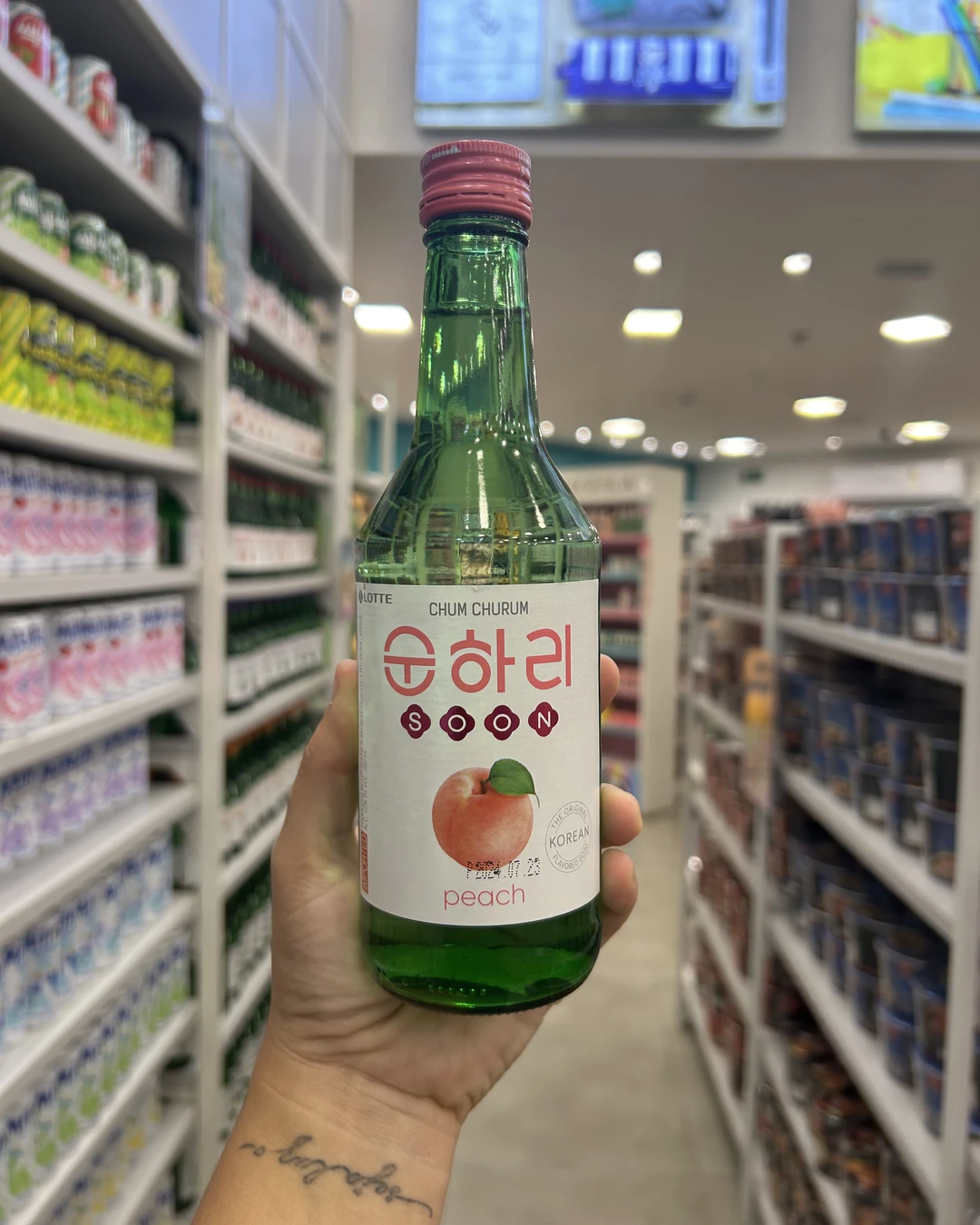 O Soju Chum-Churum Lotte Pêssego de 360ml oferece frescor frutado e equilíbrio alcoólico suave, i...